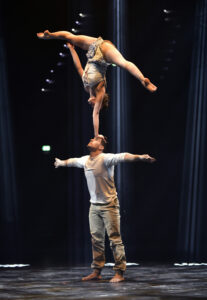 Seit 2013 sind Jose Miguel Martinez und Gabriela Diaz Cardozo als Duo auf den Showbühnen der Welt unterwegs. Die beiden Artisten haben mit ihrer Performance eine neue Sprache aus Zirkusakrobatik, zeitgenössischem Tanz und rhythmischer Gymnastik entwickelt. Kraftvoll und elegant erzählen sie mit ihrer gefühlvollen Hand2Hand Nummer eine ergreifende Geschichte, mit der sie bereits zahllose Zuschauer in ihren Bann gezogen haben. Darüber hinaus werden die zwei noch an den Strapaten zu sehen sein.